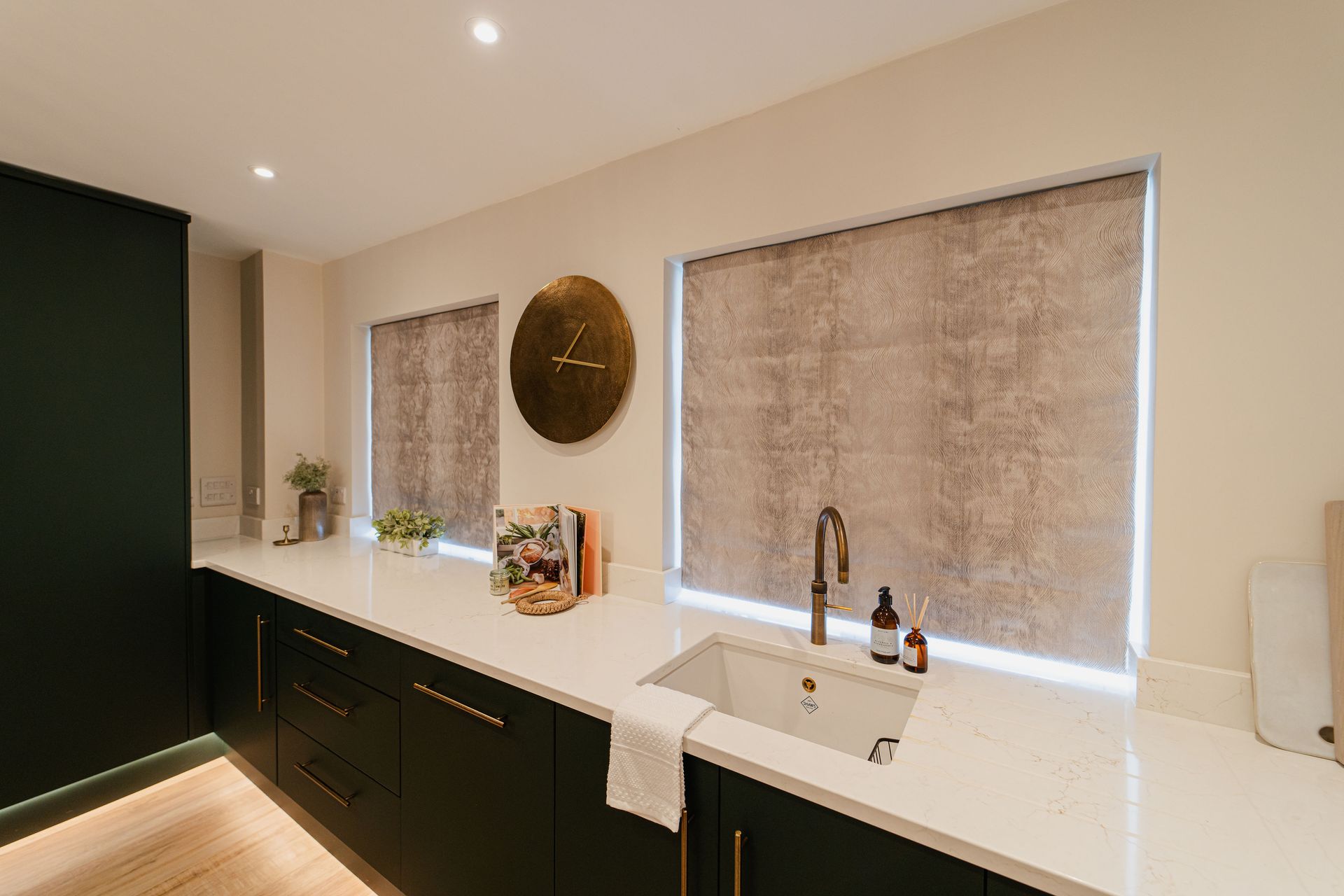 After meeting with Mackenzie and the client on site, all of the fabrics, blinds, tracks and poles were chosen to coordinate with Kenzie's design. The entire project ran like clockwork and the client was delighted with the service.